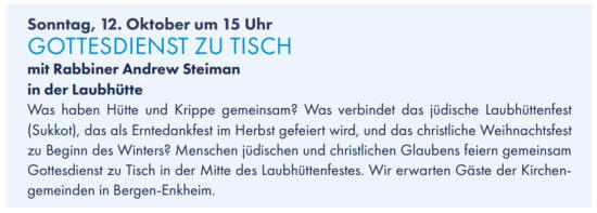 Kelterfest: Christlich-Jüdischer Gottesdienst zu Tisch mit Pfrin. K. Fuchs und Rabbiner A. Steiman