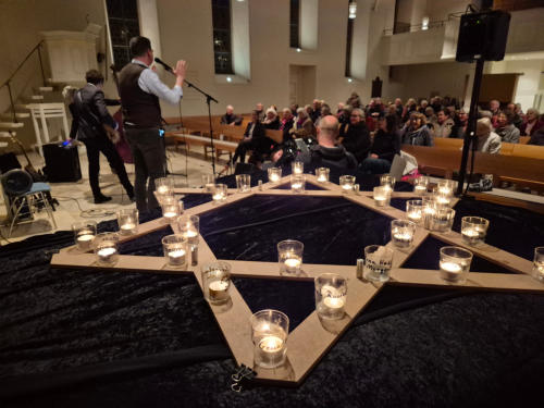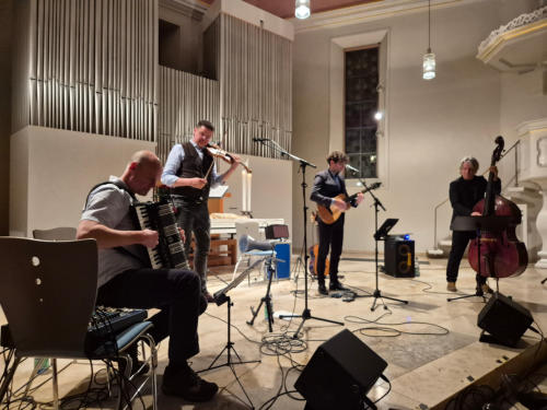 Dokumentation der Gedenkveranstaltung 2025 in Verbindung mit dem Klezmerkonzert des Quartetts Naschuwa Gedenken der Opfer der Schoa am 09.11.2025 anlässlich der Novemberpogrome von 1938 in der Laurentiuskirche, Laurentius-Str. 1, Bergen-Enkheim Das Verlesen der Namen der ermordeten Berger Jüdinnen und Juden fand an einer passenden Stelle während des Klezmerkonzerts statt. Wie das Jerusalem International Klezmer Festival 2017 in Yad VaShem, dem Ort des Gedenkens der Opfer der Schoa und der Helden des jüdischen Aufstands im Warschauer Ghetto 1943 (> Dokumentation) ist auch das Klezmerkonzert 2025 in der Lautentiuskiche ein Ausdruck des Willens zum Leben. Zum Programm „A Nacht in Gan Ejdn“ schreibt die Band Naschuwa: „Die Sehnsucht nach dem Garten Eden - Sinnbild für Paradies, Frieden und Versöhnung - bewegt Menschen. Noch sind wir nicht dort angelangt. Noch gibt es im Zusammenleben der Menschen viel Licht und Schatten, Tag und Nacht. Aber wir machen uns auf den Weg zu diesem Garten Eden - gerade in dieser Zeit des Nahostkrieges ein wichtiger Beitrag jüdischer Musikkultur.“ Fotos: Ewald Wirth